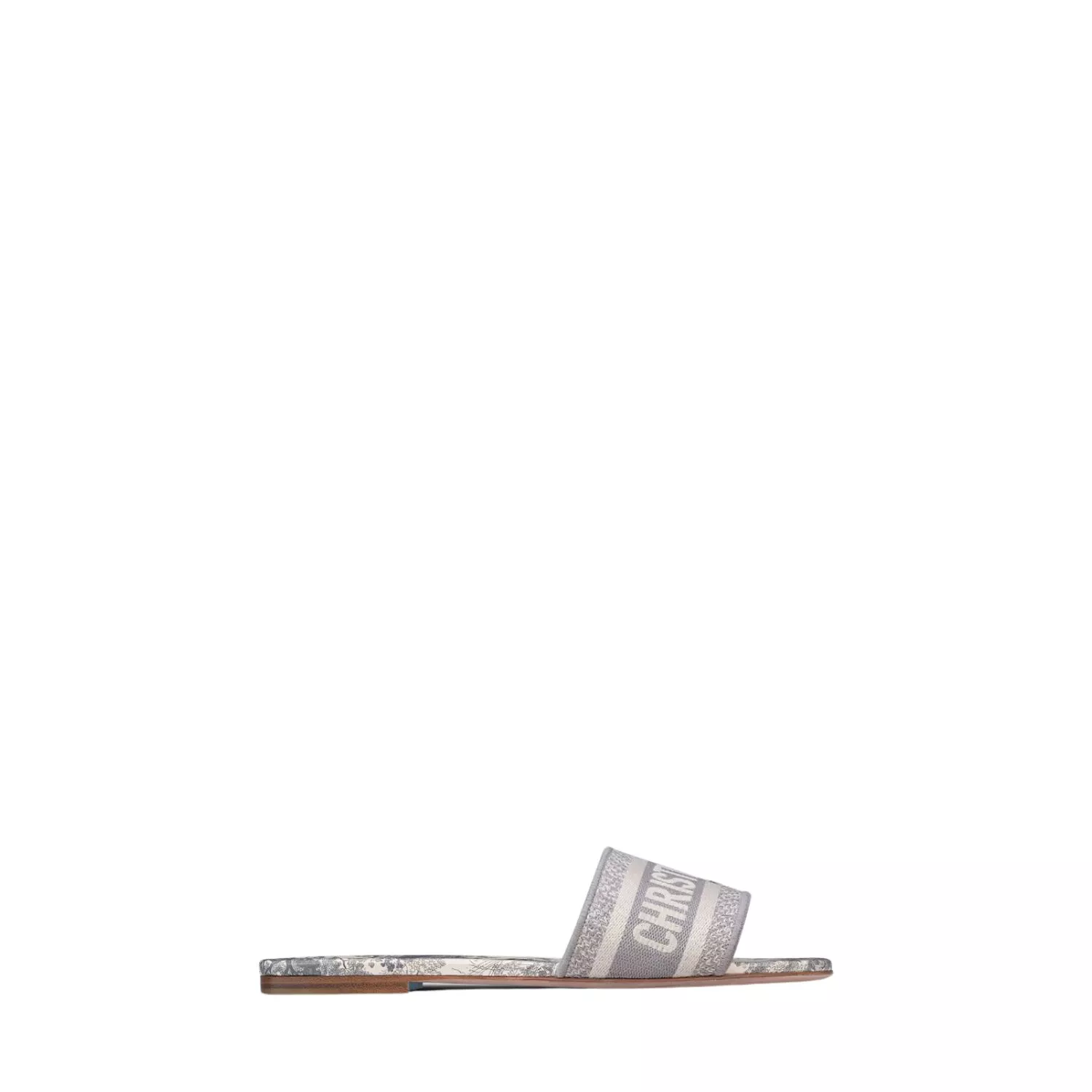 Mules Dway en coton brodé Toile de Jouy gris