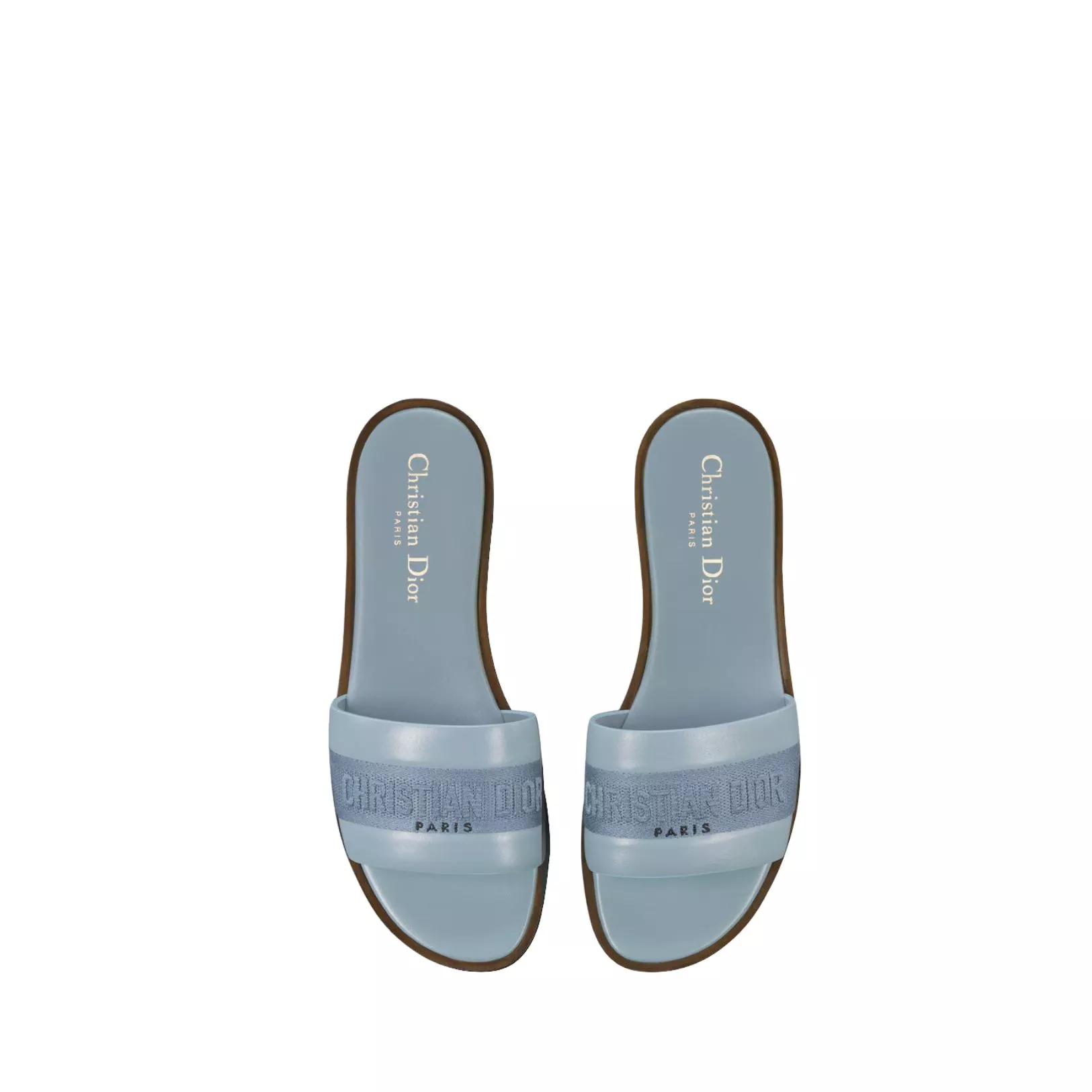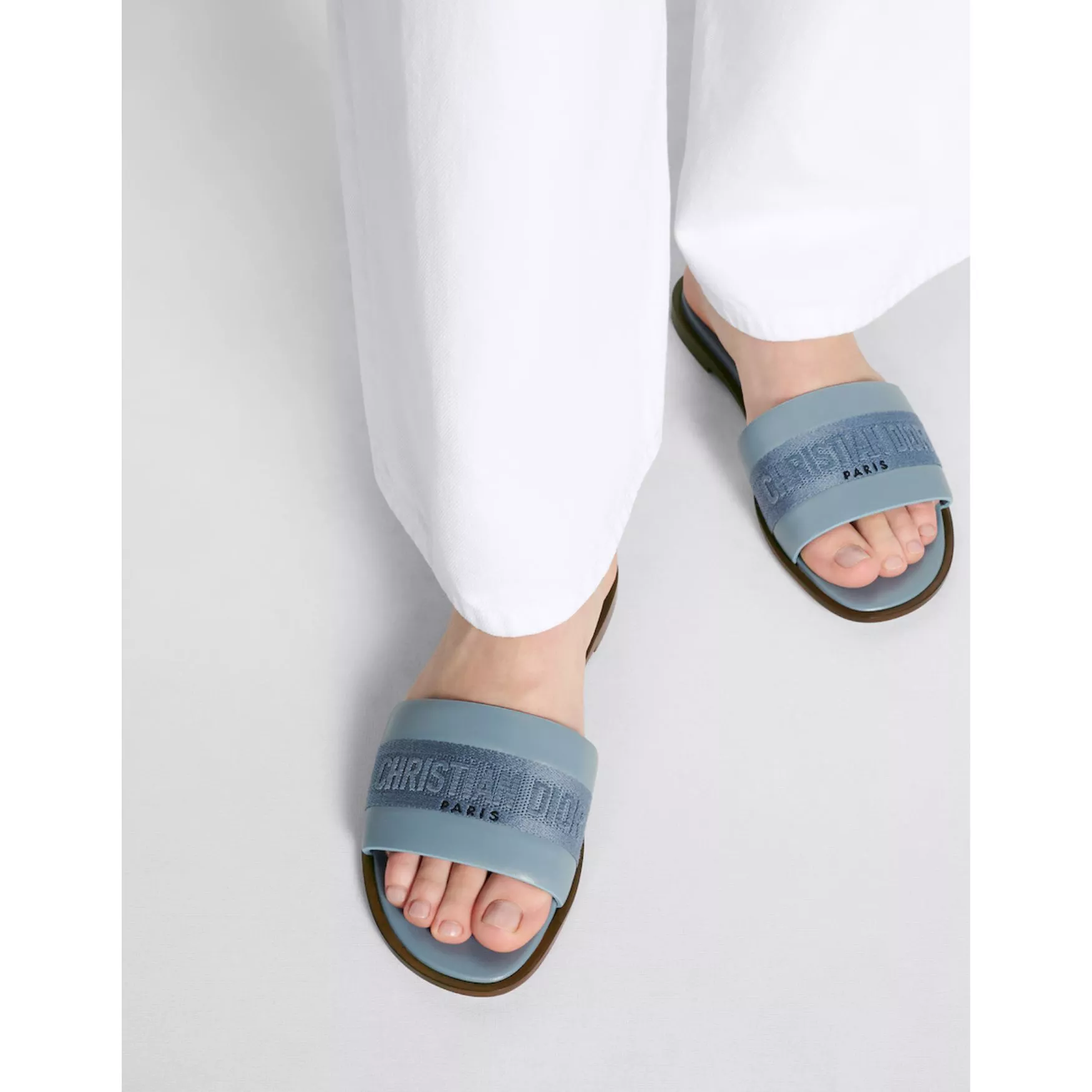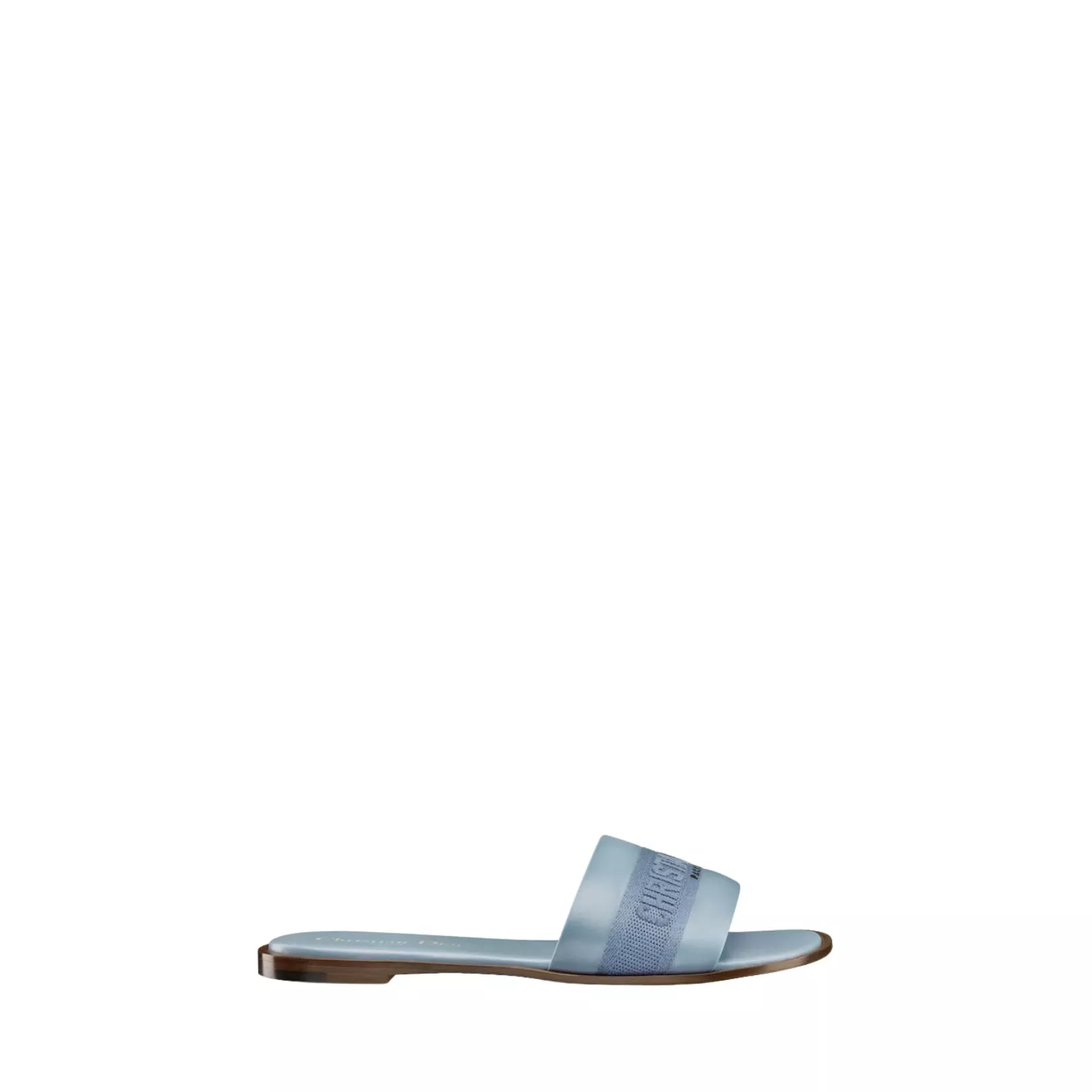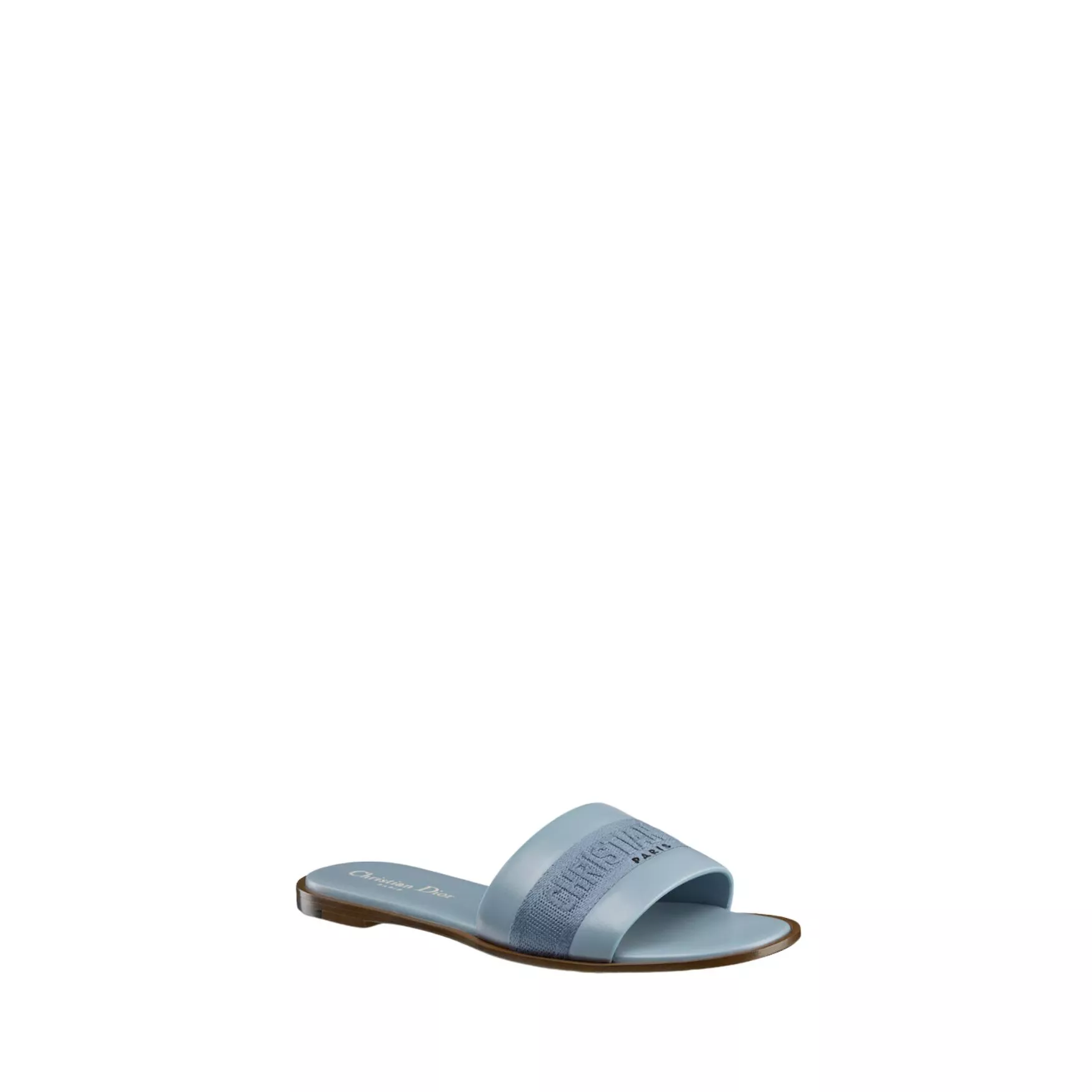 Mules Dway en cuir de veau bleu pastel et coton brodé