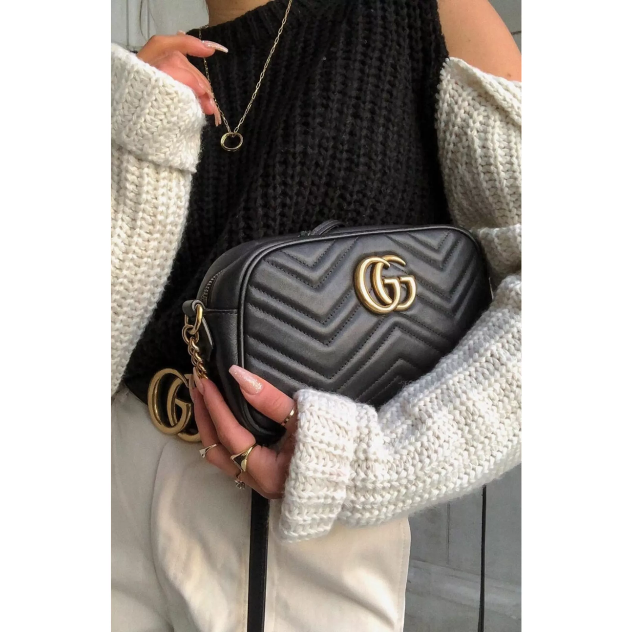 Avec les boucles GG classiques de Gucci.