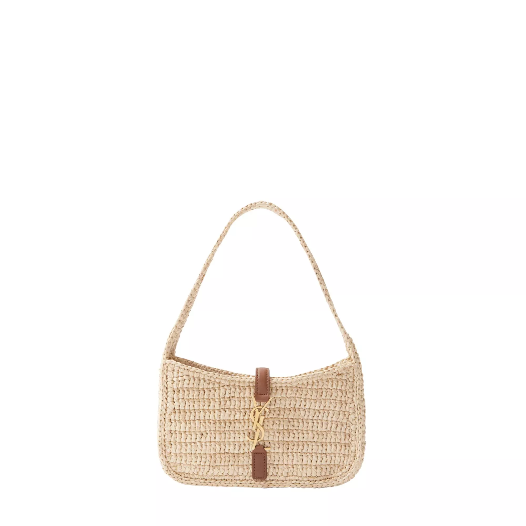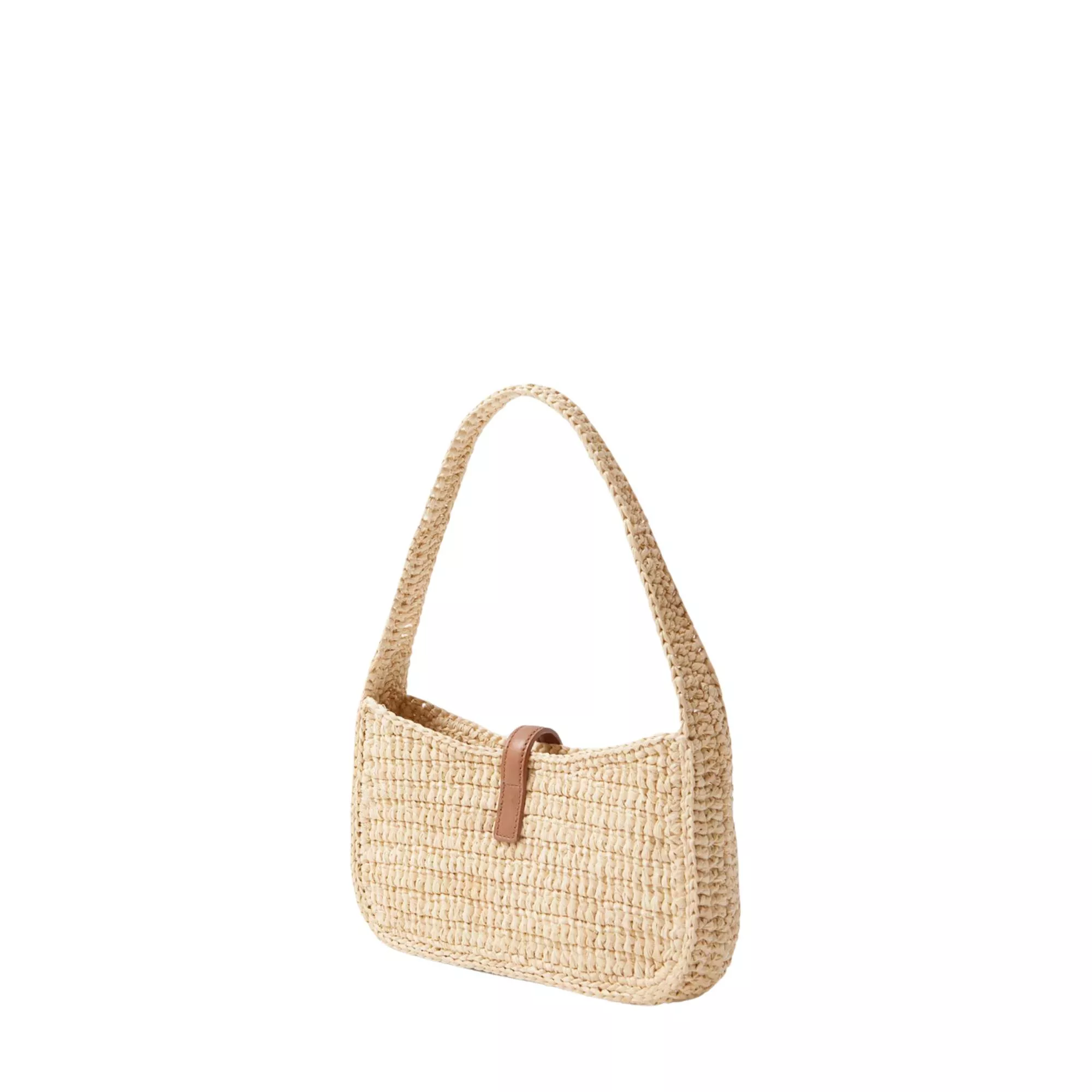 Sac à épaule Le 5 à 7 en raphia avec finitions en cuir